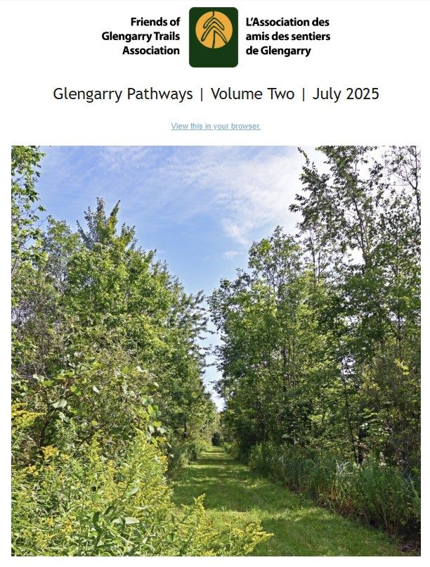 To keep up to date with what is happening on the trails just click below on our latest newsletter Glengarry Pathways. The Friends of Glengarry Trails Association periodically publishes newsletters.